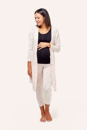 The best maternity robe for a hospital birth, photoshoot or everyday! Designed to grow with your pregnancy belly or fit postpartum. Pack your hospital bag, this super soft maternity delivery robe can be worn with our Clementine nightgown as a cozy pajama set. Wear over any lounge look for your maternity photoshoot robe.