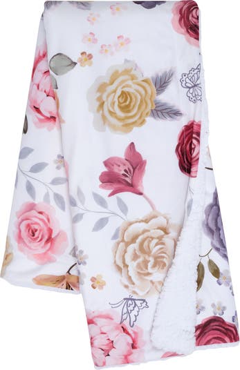 This beautiful baby blanket is the perfect way to keep your little one warm and cozy. The front of the blanket is a plush minky fabric and the back is a soft white cozy faux shearling fleece. The front features elegant flowers including peonies, roses, lilies, cherry blossoms, and butterflies. The Lambs and Ivy’s Secret Garden baby blanket is the perfect gift for any new baby. It is soft and stylish and is sure to become a cherished keepsake.