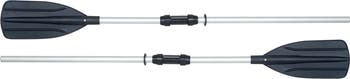 The Bestway 57-Inch Sectional Aluminum Oars are dual-purpose, lightweight oars that work for kayaking, rafting, canoeing, or just about anything out on the water. These oars can be used as 2 individual oars, measuring 57 inches long, or can be combined into a single twin blade paddle 86 inches long. The sturdy twist-locking section connectors and blades stay together even in the roughest of waters. The blades are ribbed, which helps each stroke to be more powerful. These oars are a perfect addition to any Bestway inflatable raft or toy. Paddle around the water this summer with the Bestway 57-Inch Sectional Aluminum Oars.