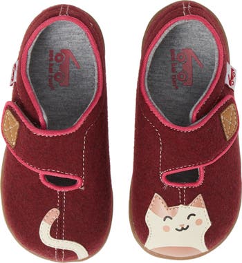 Crafted with coziness inside and out, this handsome little slipper features a hook-and-loop instep strap and a grippy sole to ensure stable footing.