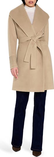 An oversize shawl collar and signature ribbed detailing at the cuffs define this sophisticated coat made from lustrous alpaca and wool.