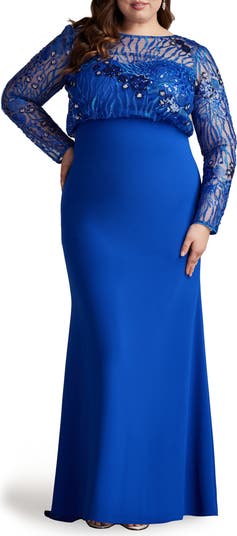 Add an undersea adventure to your next night out in this electric-blue gown decorated with shimmering creatures from the briny deep.