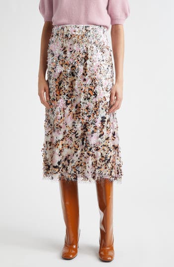 Designed to catch light from every direction, this midi skirt layers a mesh overlay over a fearless mix of sequins that play with contrast on purpose. Clear pieces glint like glass while matte ones soften the shine, glossy accents flare with movement and animal-printed sequins add a streak of attitude. The overall effect feels dimensional and kinetic like the surface is shifting as you walk.