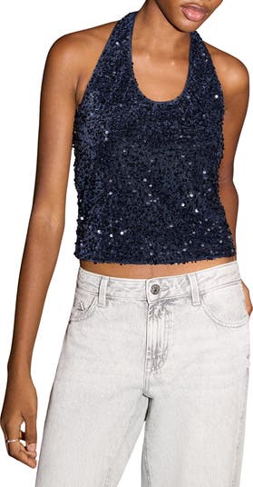 Sequin Halter Crop Top