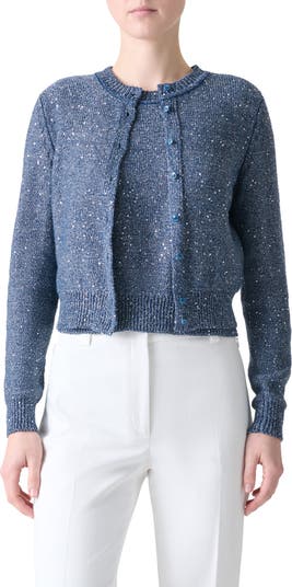 A nod to Kriemler’s quiet artistry, this cardigan weaves understated glamour into every fibre—a gentle flurry of sequins animates the cotton-linen knit with signature finesse.