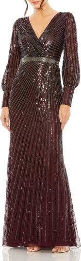 Sequined Wrap Gown with Dramatic Bishop Sleeves