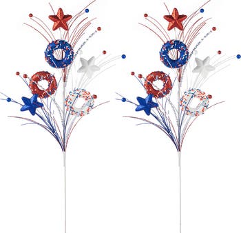 This set of 2 28"H patriotic picks is super fun for sprucing up your space. They feature cute donuts in red, white, and blue, plus star accents, so they’re perfect for showing off American pride. Stick them in a vase, use them to decorate a wreath, or add them to any arrangement, ideal for the Independence Day or adding a patriotic touch to your decor anytime.