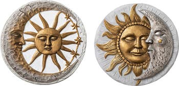 Enhance your garden or backyard with this beautiful and elegant set of stepping stones that the unique sun and moon design create a natural and cheerful atmosphere. The hand-painted pattern with a vibrant finish adds a touch of natural beauty and artistic charm. Whether displayed individually or grouped in multiples, this decorative set of stepping stones is the perfect choice for crafting a stunning pathway and creating a unique secret garden, patio, or any outdoor space.