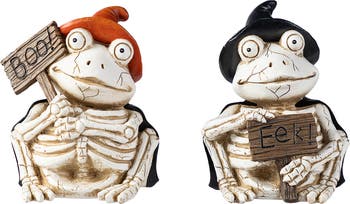 The Halloween Resin Skeleton Frogs Table Decor is a whimsical and festive addition to any Halloween table setting. The detailed carvings and the distressed finish on the resin give these frogs an aged and authentic look, making them a fun and quirky centerpiece for Halloween gatherings.