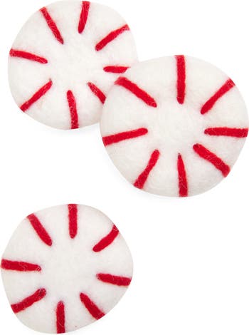 Keep your furry friend in the festive spirit all year long with this trio of peppermint toys handcrafted from densely felted wool. Perfectly sized for batting, chasing and stashing in secret hiding spots, these play-friendly treats also have a practical use—the firm wool fibers act as a natural floss to help keep kitty s teeth clean.