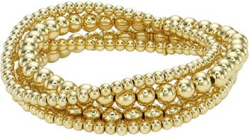 Whether worn individually or stacked, this set of stretch bracelets strung with vermeil beads in two sizes brings noteworthy shine to your wrist.