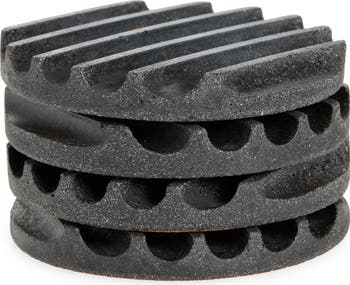 Elegant style meets utilitarian design on these concrete-blend coasters featuring a ridged top to ensure your glass won t stick to it and a cork base to prevent scratching your furniture.