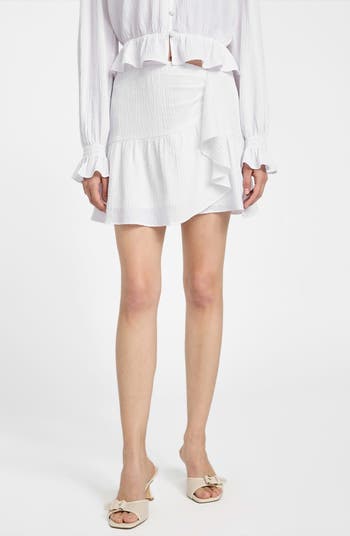 A luscious ruffle cascades down the side of this gauzy textured skirt made with a frilled hem for flouncy movement.