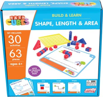 MATHCUBES: SHAPE, LENGTH AREA - Junior Learning - Explore geometric principles and measurements with our comprehensive set. The Geoboard, Prism, and Multicubes kit ensures an engaging and fruitful learning experience. Combining tactile beads with thought-provoking activities, math has never been so accessible. Visualize number connections like never before with our Mathcubes and innovative hinge design. The vibrant colors and innovative design not only appeal to the eye but also make abstract concepts tangible and easier to grasp. 15 double-sided activity cards combining 30 progressively challenging activities along with visual guides and step-by-step instructions. Carefully designed to stimulate learners’ minds, our unique sets cater to a wide array of mathematical concepts. From nurturing the foundation of number recognition with Number Bonds and Number Lines, to unveiling the beauty of geometric concepts with Shape, Length, Area, and Angles, this range has something for everyone.