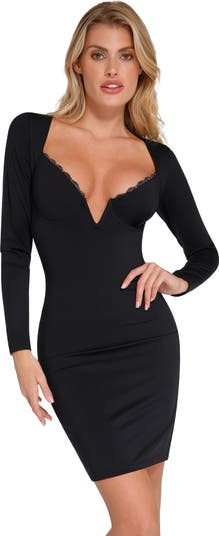 Put on this deep V-neck long-sleeve lace shapewear dress and effortlessly blend elegance with sexiness, becoming the center of attention under the spotlight!