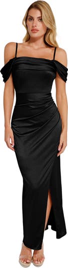 - Sexy high slit elongates the legs, enhancing the silhouette