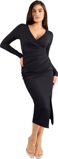 - Sculpt and stun in this ruched long sleeve midi dress, perfect for every occasion from date nights to special events.
