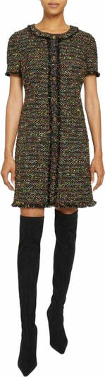 - Short Sleeve Shift Dress in Luxury Tweed with Lurex Accent