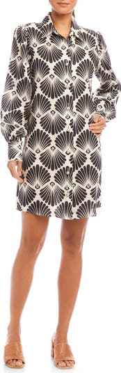 Shirtdress style gets elegantly elevated with billowed sleeves and a row of pearly buttons.