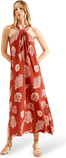 Embrace the essence of summer with this Shell Print Twist Neck Dress, perfect for effortless style and comfort on sunny days.