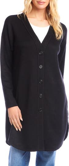 A curved shirttail hem brings easy movement to a brushed cardigan updated in a longline silhouette.