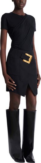 Short grain de poudre skirt with slit Integrated belt with Anthem buckle Patch pockets at the sides Straight cut Model measures 177cm and wears a size 36 Main material: 100% virgin wool Made in Poland Item: GF1LBB22WC09 100% of the wool fibres used to make this garment are sourced from sheep farms that are certified and animal welfare-friendly
