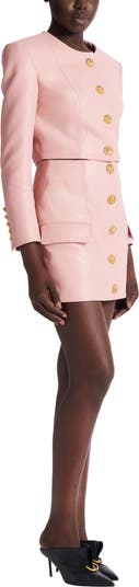 Short lambskin skirt with buttons Welt side pockets with a flap Decorative Lion Head buttons on the front Visible zip on the back with Balmain Paris-engraved slider Straight cut Model measures 177cm and wears a size 36 Main material: 100% lambskin Made in Turkey Item: GF1LBB29LE04