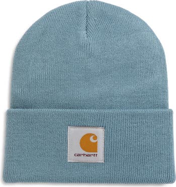 An unmistakable logo patch marks the turned-up cuff of a short knit beanie that offers no-nonsense warmth.