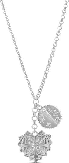 Fluted heart and star charms are illuminated by pavé cubic zirconia on this gleaming rolo-chain necklace.