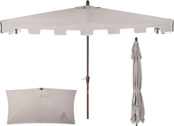 Our unique half-umbrella has a square-scalloped edge inspired by classic mid-century designs. It features a sturdy aluminum frame with auto-crank that s covered in durable outdoor canvas. This one-sided umbrella is perfect for a balcony or small patio; it s a stationary design that does not tilt.