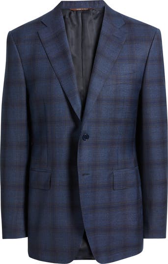 Italian wool patterned in a shadowy check of deep, inky blues distinguishes a sport coat tailored with clean lines supported by light padding in the shoulders. Styled with traditional notched lapels and lightly fitted in the waist, it adds a smart finish to any semiformal look.