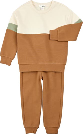 Keep your little one cozy all season long in this colorblock set featuring a crewneck sweatshirt with ottoman rib detailing and paired with coordinating joggers.