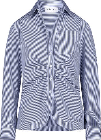 The Sierra is a button front shirt in a crisp, cotton poplin. It features an open neckline, spread point collar, long sleeves with button cuffs, and a chest pocket. The Sierra is tailored with tucks down the front for a contoured waist and flattering silhouette. Also available in Black or Navy/White Stripe stretch poplin. Sierra is part of the Câllas Responsibly Made Collection. Made in ItalyFREE SHIPPING, RETURNS, AND DUTIES PAID IN THE USA AND EUROPE. DETAILS: 100% Traceable Cotton Slim fit Button front closures Open neckline Spread point collar Chest pocket Long sleeves with button cuffs Curved hem at front Fit: Model is 177 cm / 5 10" wearing Italian size 40.Care: Professional cleaning recommended