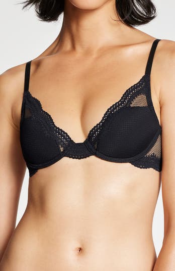 The most flattering bra for small-chested women, in a sophisticated, luxurious soft lace. Lightly lined underwire plunge bra that supports and lifts AA, A, B cups without cup gaps, uncomfortable push up padding, digging, or feeling like your body s not enough. Features a beautiful lace overlay that creates a flattering lift, scalloped lace neckline and band for an elevated, everday touch that is smooth under shirts.