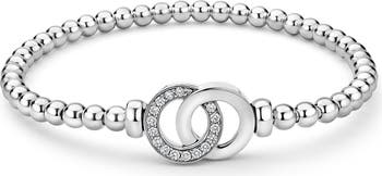 A pavé diamond–adorned center link brings icy sparkle to this signature Caviar beaded stretch bracelet cast in sterling silver.