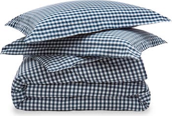 Sleep in the five-star luxury of this gingham percale set made from fine long-staple cotton that gives it a smooth finish and cool breathability for comfort all night long.