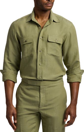 This classic button-up shirt is crafted from a luxurious blend of tussah silk and lightweight linen—the fabric was custom-developed with a storied Italian mill and offers beautiful drape. Genuine mother-of-pearl buttons add a signature finishing touch.