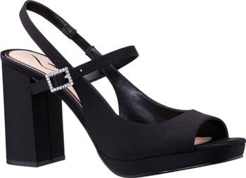 A stylish peep toe and chunky block heel balance a slingback sandal fitted with an adjustable instep strap for a secure fit.