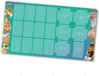 SIMILO: PLAYMAT - Keep your secret character cards and clues in perfect order, and make your Similo games really special with this awesome Neoprene Playmat! Anti-slip rubber mat for Similo. The mat has spaces for the game deck, the grid of cards to be guessed, and all clues played by the Clue Giver during the game. Measures 24 x 13.75 Inches (61 x 35 cm). Game accessory.