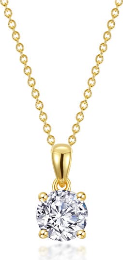 This lustrous necklace is styled with a signature Lassaire simulated diamond in a four-prong setting on an exclusive TR Gold-bonded chain.
