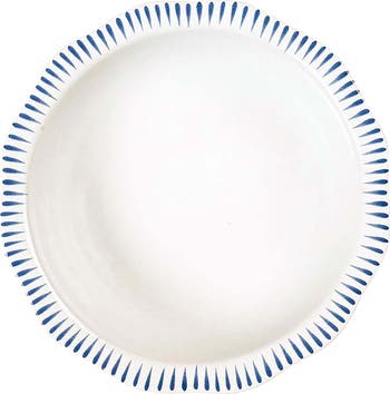 Delft blue stripes on the subtly scalloped rim put tiny exclamation points on everything you seve in this finely glazed stoneware bowl.