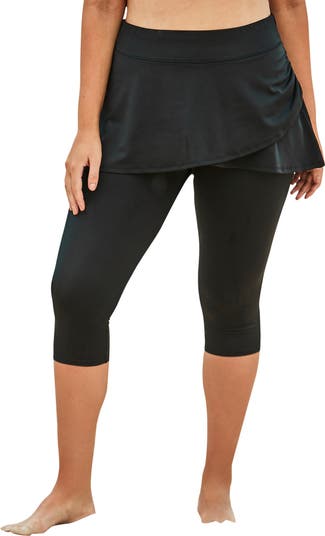 Enjoy sunny days in style with these Skirted Swim Capri Pants that offer extra coverage where it matters. Made from quick-drying Nylon/XtraLife spandex, it keeps you comfortable in and out of the water. An attached surplice skirt featuring shirring adds a touch of feminine elegance. Elasticized waist. Anti-chafing design.