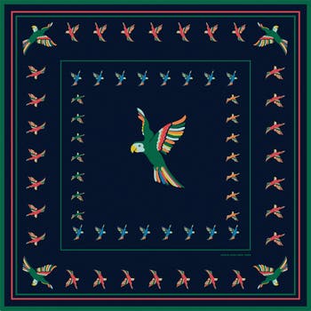 Description"Sky Parade" is inspired by the graceful spectacle of parrots soaring in harmony across the sky. The vivid interplay of tropical hues against a refined backdrop creates a balance of movement and sophistication. Finished with meticulously hand-rolled edges and presented in a high-end package, this scarf is both a statement of artistry and a perfect gift to treasure.Product Details:100% mulberry silk25"W x 25"LDouble-sided with the same colorsHand-rolled edges with hand stitching finishingLovingly packaged in a beautiful JZ presentation box * Because the edges are crafted by hand, there can be minor differences in the measurements.Care:Fill a sink with cold water and mild detergent.Submerge scarf and swish for a minute.Rinse with cold water and press gently to remove excess water.Lay on towel, roll to remove remaining water.Hang or lay flat to air-dry away from sunlight and heat.Professional dry clean is recommended.How To Wear A 25-Inch Square Silk Scarf:Classic Knot: Fold the scarf in half diagonally to form a triangle. Drape it around your neck with the point of the triangle facing down. Cross the ends behind your neck, then bring them to the front and tie a simple knot.Neck Wrap: Fold the scarf in half diagonally to create a triangle. Place the middle of the folded edge at the front of your neck, and then wrap the ends around your neck, bringing them to the front again. Tie a knot or let the ends hang loose.Bandana Style: Fold the scarf into a smaller square or a rectangle. Place it at the back of your neck and tie the corners at the front. This style works well as a headband too.Hair Accessory: Fold the scarf into a thin strip and tie it around your ponytail or bun. You can also use it as a headband, securing it with a knot or a bow.Handbag Accent: Tie the scarf around the handle of your handbag for a chic and stylish accent.Bracelet or Anklet: Fold the scarf into a thin strip and tie it around your wrist or ankle for a unique accessory.Remember, silk scarves are versatile and can be customized to suit your personal style. Feel free to experiment and find the look that best complements your outfit and mood!