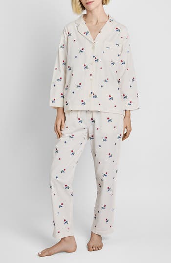 The classic Marina Pajama Set is made to wear inside or outside the bedroom, crafted from soft cotton with embroidered posies and tailored details that elevate comfort.
