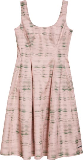 Light cotton poplin is printed with rippling stripes in this logo-detailed dress featuring a fitted bodice and flared skirt.