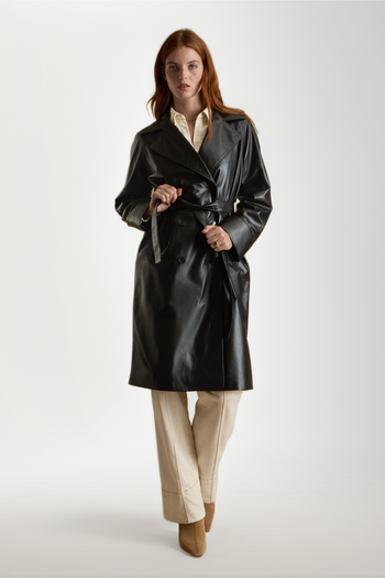 Elevate your wardrobe with a handcrafted trench coat made from premium sheepskin, featuring a rich finish and timeless details designed to endure season after season. This double-breasted leather trench coat showcases a smooth, subtly glossy surface and a fully lined interior for comfort. The wide lapel collar, tonal buttons, and adjustable waist tie create a classic silhouette, while spacious side pockets add both function and style. The longline cut offers added warmth and sophistication, making it ideal for layering over both casual and formal outfits. Crafted with care, this coat blends vintage charm with modern elegance, making it a versatile addition to any collection. Searchers for leather trench coat, sheepskin outerwear, and longline coats will appreciate its enduring style and luxurious feel.