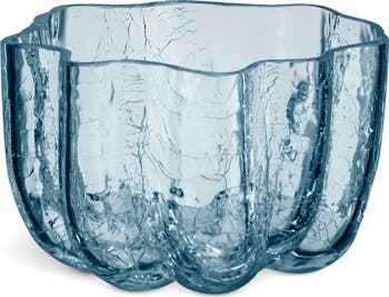 Mouth-blown in Sweden and dipped in ice-cold water, this crackly glass bowl embraces imperfection and offers a whimsical accent to any room, with or without a candle.