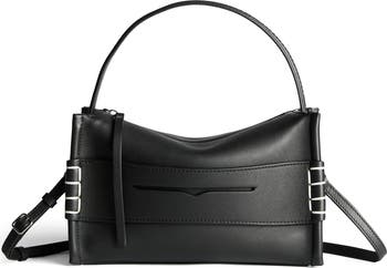 A hand-sewn, box-stitched keeper strap modeled after the label s classic penny loafers adds a prepster twist to this everyday-sized bag crafted from buttery Italian calfskin.