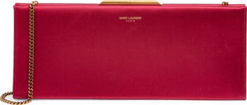 A slinky curb-chain strap shines in or out of this streamlined frame clutch made from silk-kissed satin and signed off with a gilded logo.