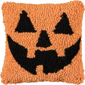 - Features a charming smiling jack o lantern design in warm fall tones, making it a perfect seasonal accent. The petite 8" x 8" size fits effortlessly on sofas, chairs, or beds, adding festive autumn charm to any space. Ideal for enhancing your home during Halloween, fall harvest, or Thanksgiving. Its compact size allows easy placement on furniture or as part of a layered pillow display for a welcoming seasonal atmosphere. Coordinates effortlessly with a variety of fall décor themes. Whether placed in the living room, bedroom, or entryway bench, this pillow adds a touch of personality and seasonal warmth wherever displayed. Crafted with hooked detailing that gives the pumpkin design texture and depth. Made for decorative use, ensuring it retains its seasonal charm year after year without overwhelming larger décor arrangements.